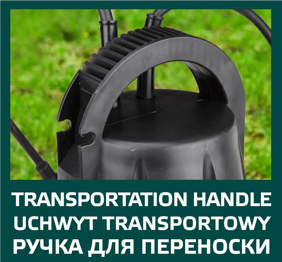 VERTO submersible water pump (ref. no. 52G441) with a power of 400W, designed to pump clean and dirty water, the amount of impurities should not exceed 35 mm. The pump capacity is 7500 liters per hour. The device has I protection class, IPX8 degree. The maximum working immersion depth is 5 m, and the water lifting height is a maximum of 5 m. The device has the function of automatic switching on and off the pump depending on the change in the water level. The pump is equipped with a long copper power cord and a carrying handle. The device should not be used to pump water for food purposes. Included with the pump are a connector and a cap. Compliance with European safety standards is ensured by the CE certificate. The VERTO brand offers an assortment of power tools and accessories for every DIY enthusiast.