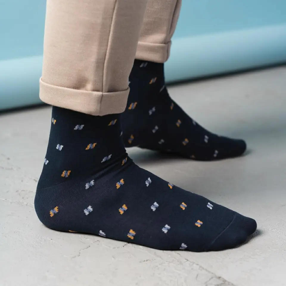 Suit socks made of the highest quality cotton. They fit perfectly with a suit and other types of elegant clothing. Designed for men who value prestige and comfort. Produced in dozens of subdued colors and several patterns to satisfy the tastes of all customers.