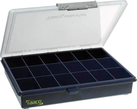 Box for small elements, fixed compartments