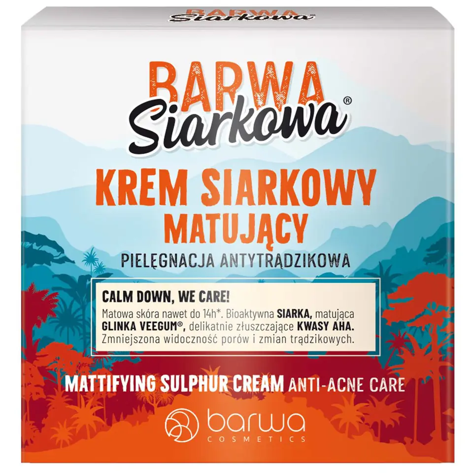 Mattifying cream from the Sulphur Colour series effectively reduces the effect of excessive shine of the facial skin, restoring balance in the glowing T-zone. It is dedicated to oily skin, as it allows you to permanently reduce oily skin and reduce excessive sebum secretion. Thanks to its unique recipe, the cream supports the fight against imperfections and blackheads, while reducing their development. Ideally suited as a make-up base.