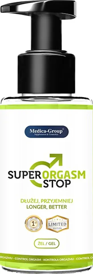 Super Orgasm Stop gel - to delay premature ejaculation, strong orgasm 150 mlSuper Orgasm Stop aims:• Help prolong the duration of intercourse• Increase control over premature ejaculation• Help in full control of orgasm• Keep the level of arousal below the threshold for premature ejaculation while maintaining an erection• Exert a calming effect on ejaculation• Learn to modulate and reduce the level of arousal and arousalSuper Orgasm Stop helps to achieve the goal! Thanks to the use of a unique formula, Super Orgasm Stop has anesthetic properties and reduces irritation of mucous membranes, thanks to which it can give a quickly felt impression of coolness and freshness. It is also extremely important in the composition of Super Orgasm Stop, it is its so-called "carrier", i.e. the main ingredient responsible for moisturizing functions. This is most likely the safest and most natural carrier. It does not sensitize, does not irritate, does not damage condoms, is light and easy to use. After application, it is easily washed out of the intimate areas. How to use the gel: Apply the right amount of gel to the entire member a few minutes before intercourse and massage gently until absorbed. Can be used with a condom. Full composition of Super Orgasm Stop gel: Aqua, Propylene Glycol, Hydroxyethylcellulose, Polysorbate 20, Alcohol Denat, Phenoxyethanol, Ethylhexyglycerin, Mentha Piperita Oil, Limonene , Linalool, Menthol, Lactid Acid.