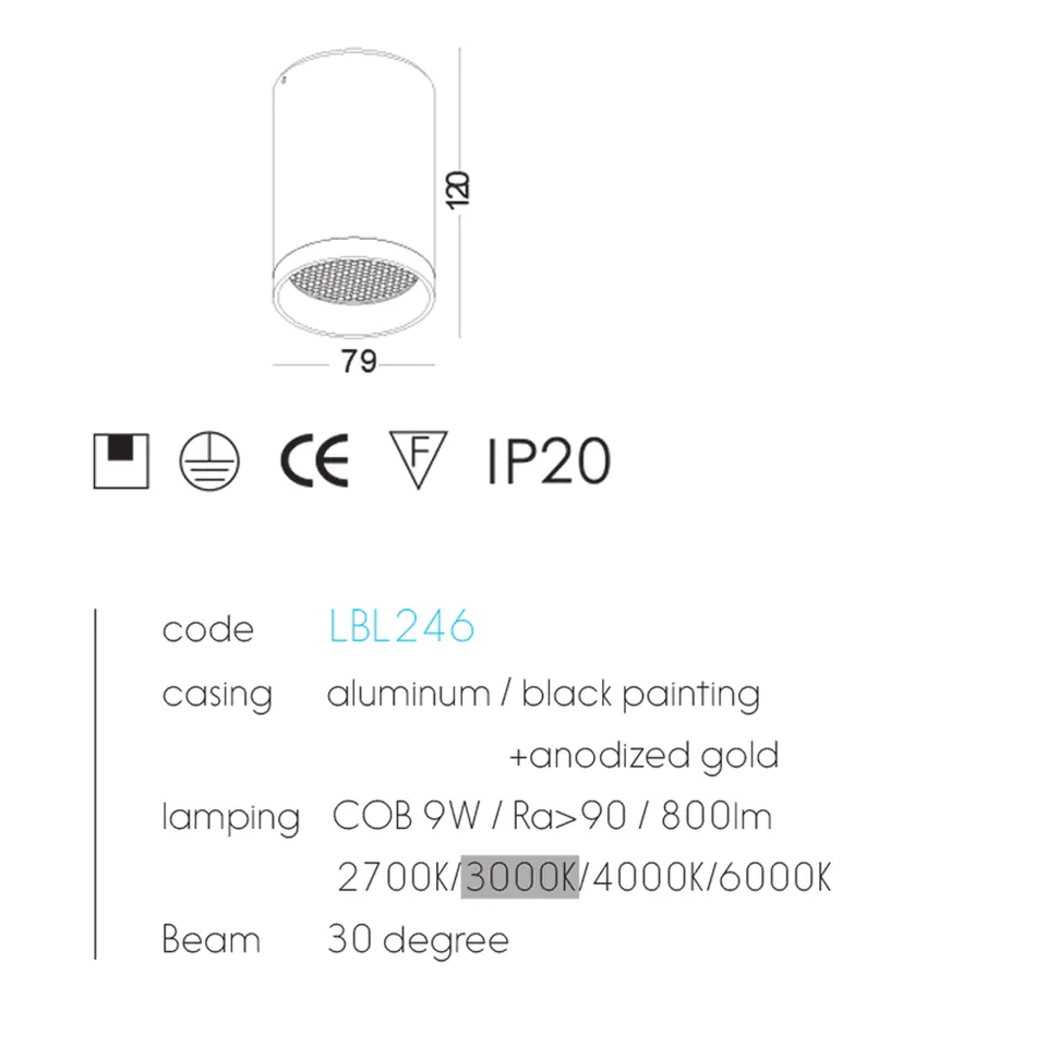 Surface-mounted lamp LBL246 Light colour slightly warm, Colour Black, Dimmable no