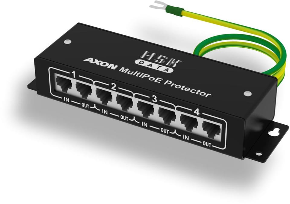 AXON-POE-MULTINET is AXON's multi-channel device for surge protection for devices connected to a 10/100 Mbps Ethernet network and powered remotely in PoE technology
