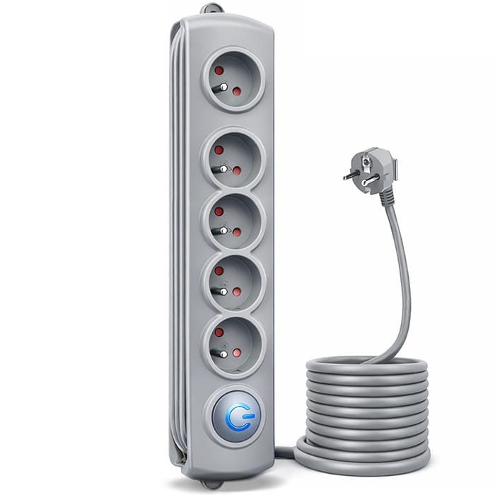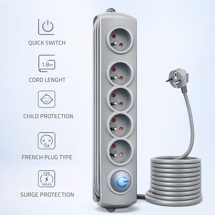 Surge protector 5 sockets 1.8m gray