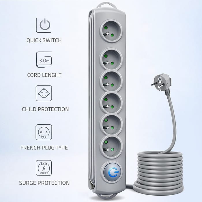 Qoltec surge protector has grounded electrical outlets for connecting full-sized plugs, cable and organizer cable. Elegant design and a large, backlit foot switch Quick Switch provide comfortable use. Strake structure is made of non-combustible material and thanks to a surge security it provides security for your devices. It is also equipped with child protective locks. Surge protector is designated to be used at home, work, shops and in other places, in which you need to connect few devices at the same time. Additional advantage is possibility of mounting surge protector on the furniture. Device Product is insured.