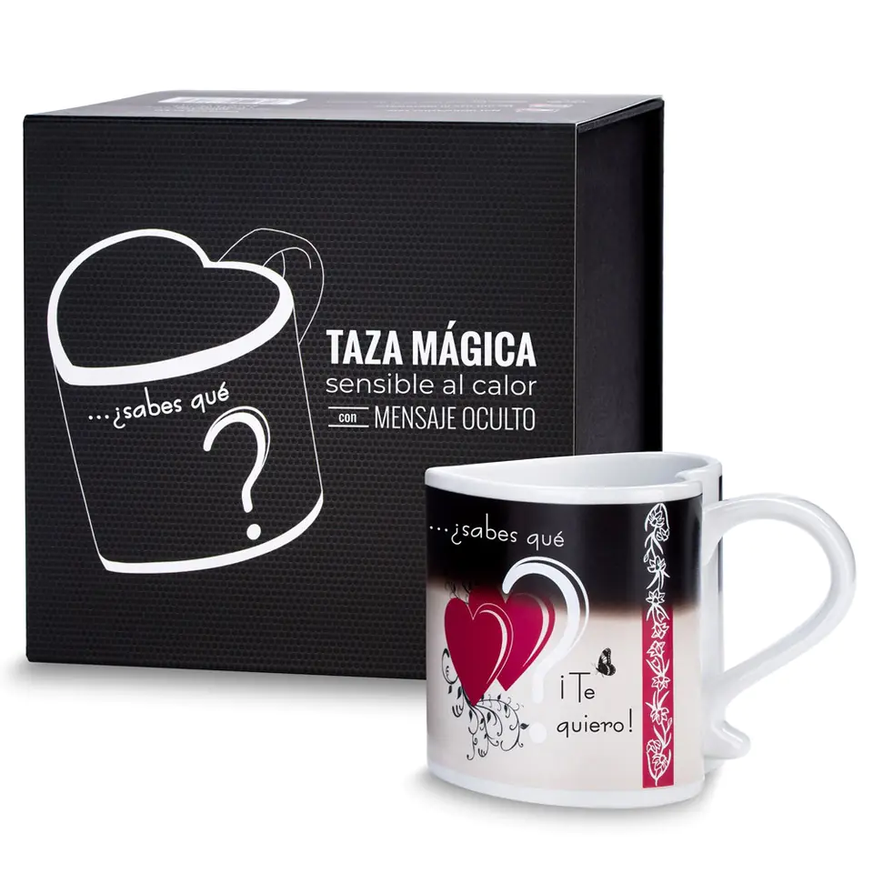 Magic Color Changing Mug: The Surprising Deluxe Cup is a thermoactive heart-shaped mug with a hidden message, packed in an elegant gift box. At first glance, all you can see on it is the question You know what?, placed on a black background. When you pour a hot drink into a cup, its appearance will completely change. Black paint will gradually fade, revealing hearts and the inscription I love you. Not only for Valentine's Day: Although this gift will especially work well during the Day of Lovers or the anniversary, any other day is equally good to say to someone "I love you". A love cup that changes the appearance, hidden in a black gift box, is also ideal as a gift without an occasion, both for her and for him. Surprising news in this form will awaken feelings and brighten up every day of a loved one. Express feelings by surprise: The best way to express your feelings is to do it by surprise. Such a tender gesture will impress your loved one and will be remembered, and every coffee or tea will be associated with you. The cup is packed in an elegant gift box, so it awakens the imagination before opening. If you want to please yourself as well, pour a hot drink over the eyes of your other half and watch her reaction. How it works:The mug has been covered with a special paint, which - when the cup is hot - gradually reveals the hidden message. If you want to surprise someone, all you have to do is pour a hot drink into it. When you cool the cup, the heart and inscription will gradually fade. This gadget is a dream gift for a girl – it hides a secret, is cute, appeals to feelings, and is nicely packed.