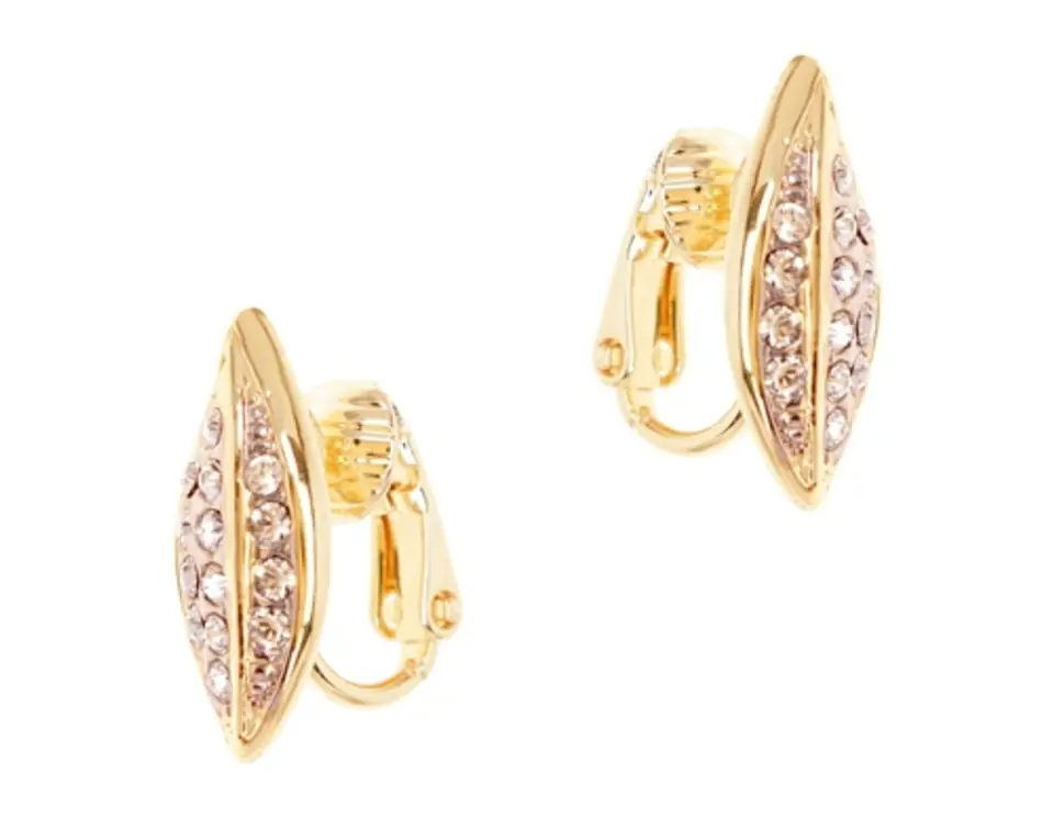 Clips are an excellent solution for women who do not wear earrings. Clips with Swarovski crystals. Length 1.8cm, width 0.8cm. Gold-plated clips.