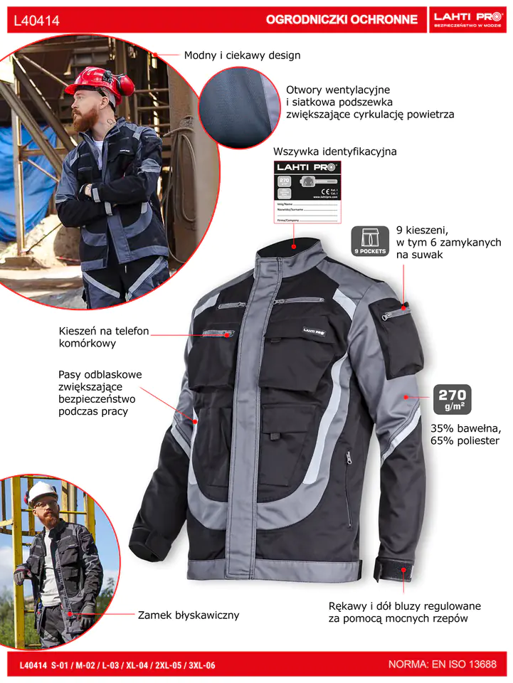 - Sleeves and bottom adjustment with strong velcro fasteners