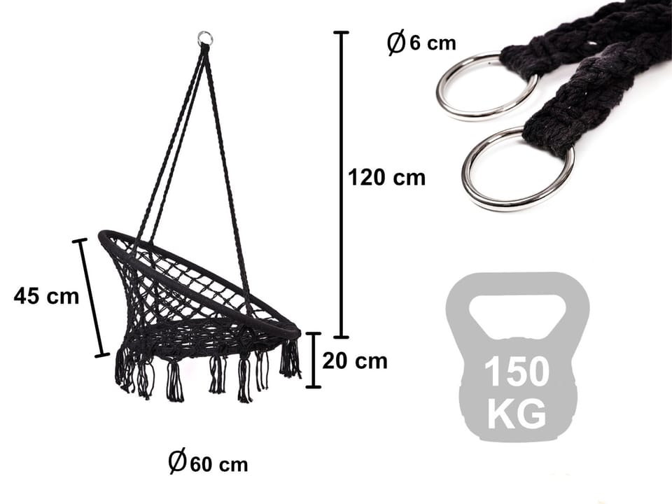 total diameter (width with backrest): 80 cm rope length: approx. 108cm