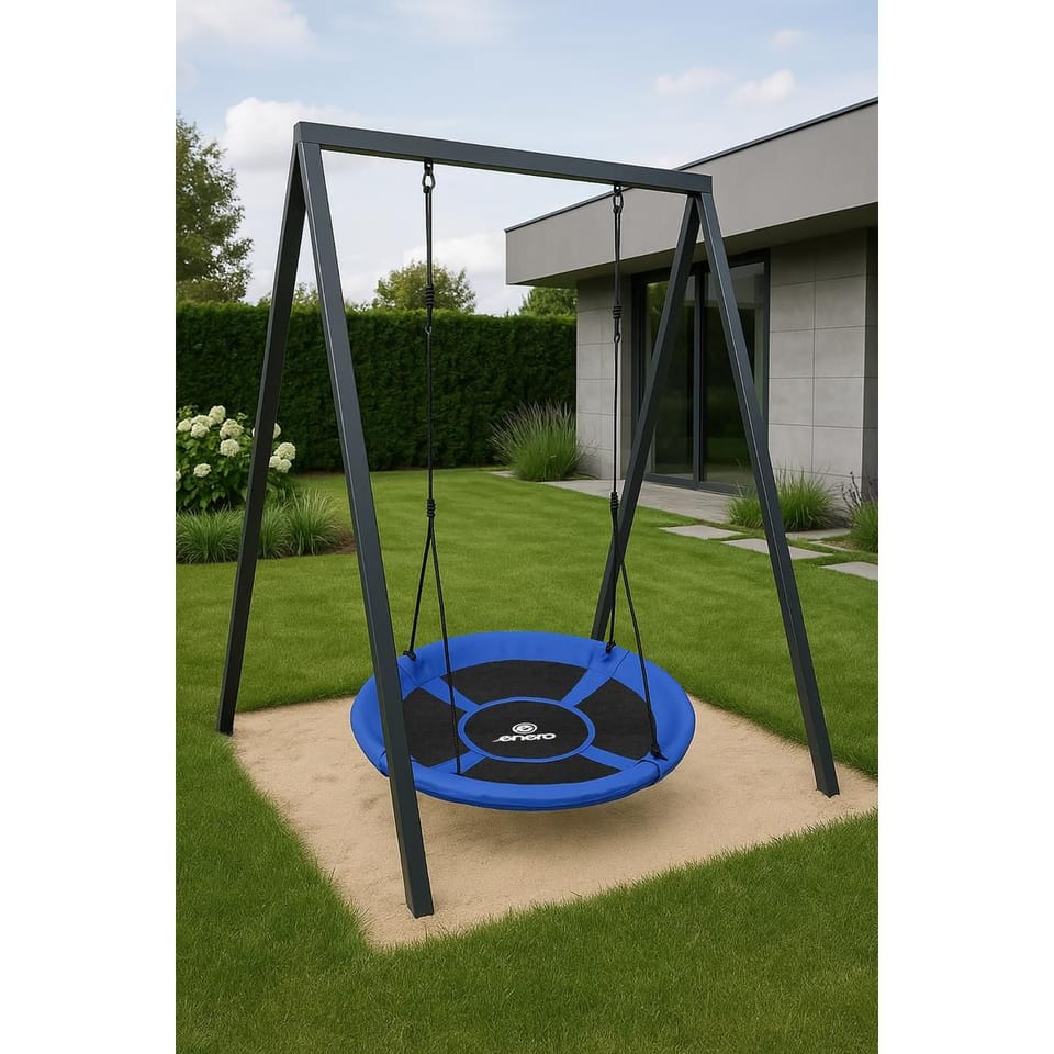 Swing for children stork nest 95cm XXL blue Swing provides great fun in the garden or yard. Its spacious surface will allow you to comfortably lie down in any position by the child. Solid workmanship guarantees safety and comfort of play, and the original design will certainly appeal to parents. Two suspension points are the certainty of safe fun of your children. Technical specification: diameter 95 cm, maximum load up to 150 kg, dimensions: 140-190cm, diameter 95m, Material: steel dia.25mm,oxfordPPPP