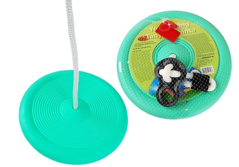 The swing has the form of a plate with a diameter of 28 cm. The set includes a comfortable seat, a thick rope and an element for hanging a swing. Installation should not be a problem. It should be mounted 35 to 59 cm above the ground. It will be used on playgrounds, for rope rides, in the garden or in the children's room. Vivid green color will definitely attract the attention of the child.