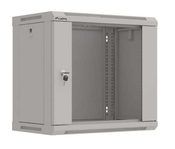 Szafa instalacyjna rack wisząca 19" 9U 540x350 szara drzwi przeszklone flat pack