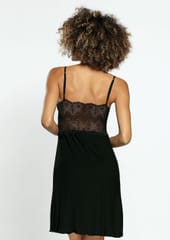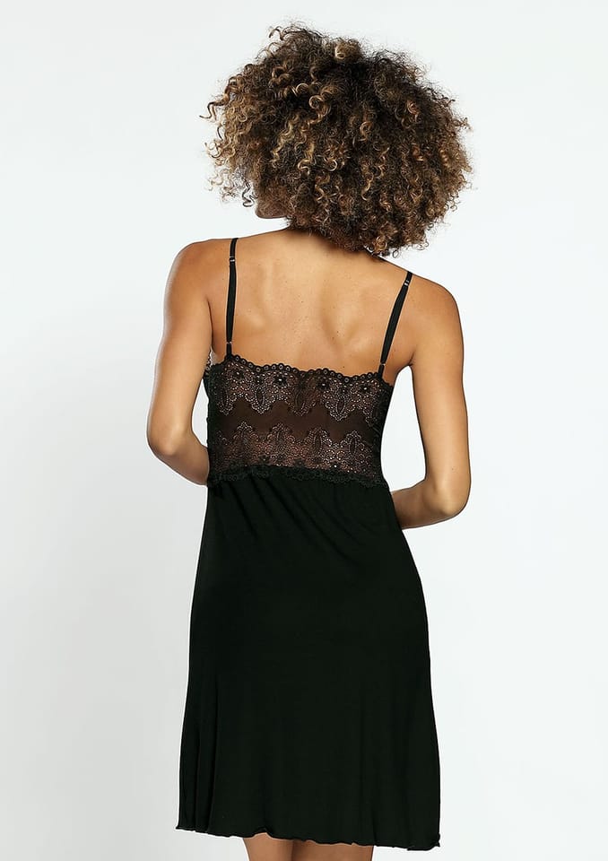 Zmysłowa i elegancka - koszulka Cindy, dostępna w kilku kolorach, ale zawsze z czarną, koronkową górą. Głęboko wycięty dekolt, miseczki podszyte tkaniną, prawdziwa ekspolozja kobiecości...Dół delikatny, luźny, uszyty z miękkiej wiskozy. Skład: 95% wiskoza, 5% elastan.