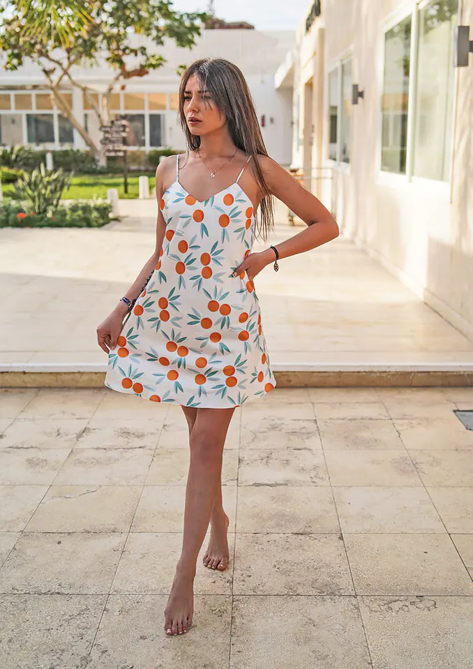 Beautiful, classic T-shirt of the night made of patterned satin. On thin straps with adjustable length, thanks to which the top of the shirt looks light and allows you to expose the shoulders. V-neckline. Cut loose, airy, feminine, highly comfortable. Composition: 100% polyester.