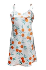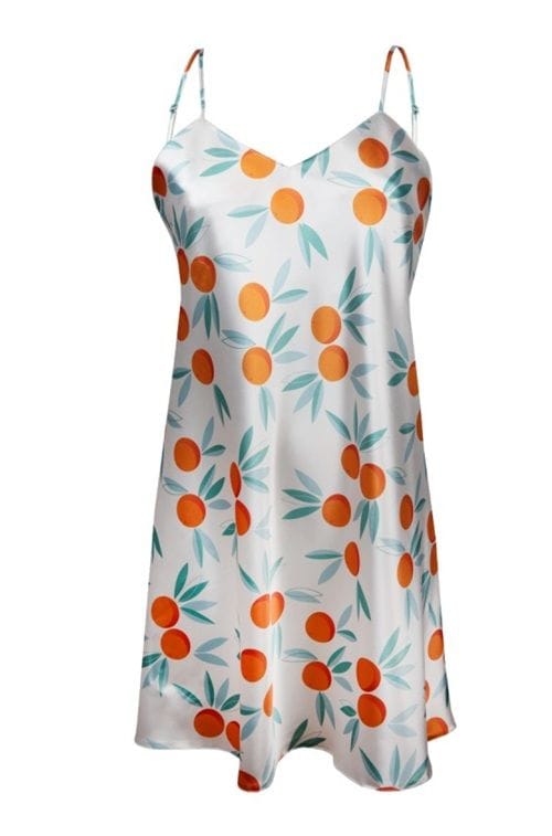 Beautiful, classic T-shirt of the night made of patterned satin. On thin straps with adjustable length, thanks to which the top of the shirt looks light and allows you to expose the shoulders. V-neckline. Cut loose, airy, feminine, highly comfortable. Composition: 100% polyester.