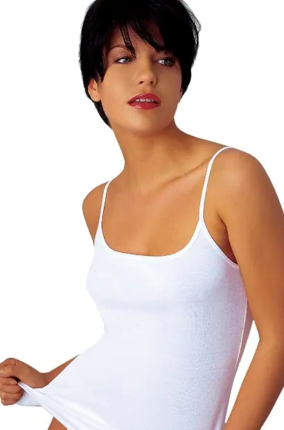 Klasyczna koszulka na wąskich ramiączkach z wysokiej jakości bawełny. Miękka i delikatna, idealnie dopasowuje się do ciała, zapewnia komfort noszenia.
