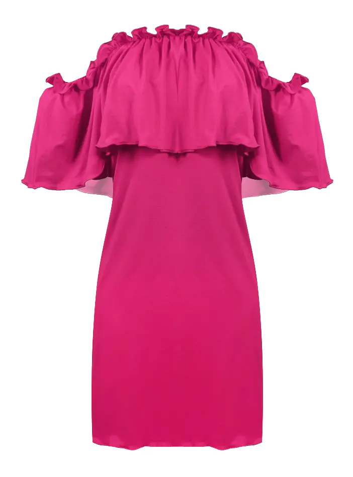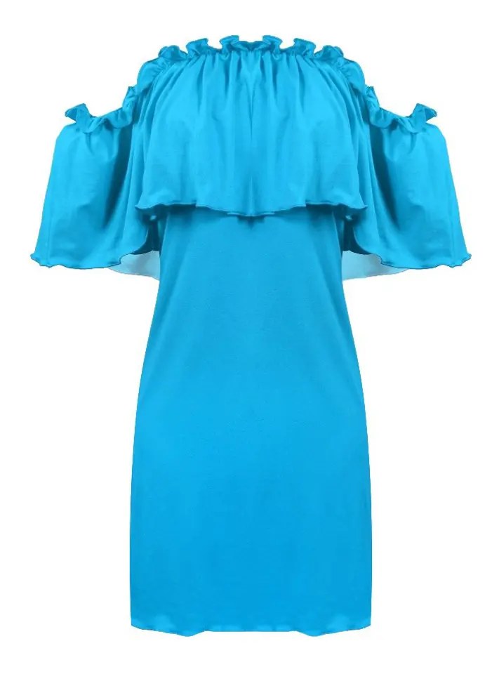 Stylish nightshirt in black color that completely exposes the shoulders. Latin style - fashionable and intriguing. An eraser at the top. Mid-thigh cut, slightly close to the body, tempting... Composition: 95% viscose, 5% elastane.
