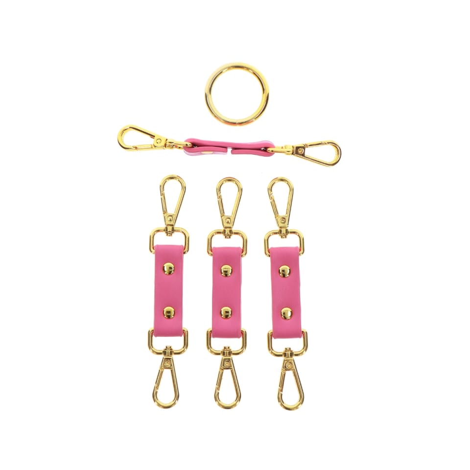 Discover a unique world of erotic adventures with the Taboom Malibu Hogtie handcuff harness. This elegant accessory, made of high-quality pink vegan PU leather, combines aesthetics and functionality. The gold metal details add a unique touch, creating the perfect combination of style and subtlety. The harness allows you to effectively immobilise your hands and feet behind your back, which introduces an element of dominance and control, increasing pleasure for both parties. It pairs perfectly with the Taboom Malibu Cuffs, creating a cohesive whole in which every moment becomes more intense. Choose the Taboom Malibu Hogtie and indulge in exciting fantasies, enjoying the captivating world of bondage that this unique accessory provides. It measures 32 cm and the materials used ensure comfort and durability. It is the ideal choice for those wishing to enrich their relationship sensations.Material: PU leather | metal Total length: 32 cmHandcuffs not included