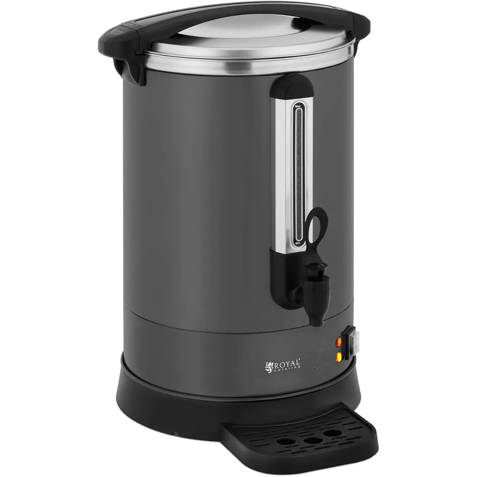The Royal Catering brewer allows you to prepare and keep warm teas or herbal infusions. The housing of the device is made of stainless steel. Non-heating handles allow you to carry the device comfortably. The lid is equipped with a locking mechanism, guaranteeing no spillage of liquids. The power of 1400 W allows you to quickly heat up and keep beverages warm. The capacity of 14 l allows you to serve about 105 cups at a time. The tap helps to precisely measure the amount of liquid and the drip tray protects against dirt.