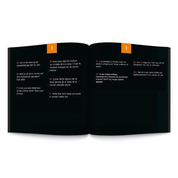 The 24 Kinky Edition Challenges are available in 10 languages: English, Spanish, French, German, Dutch, Polish, Russian, Italian, Swedish and Norwegian. These challenges will add exciting color to your sex life. Are you rude enough to plunge into the abyss of erotic raptures? Let yourself be carried away and experience new, amazing love and erotic moments.