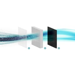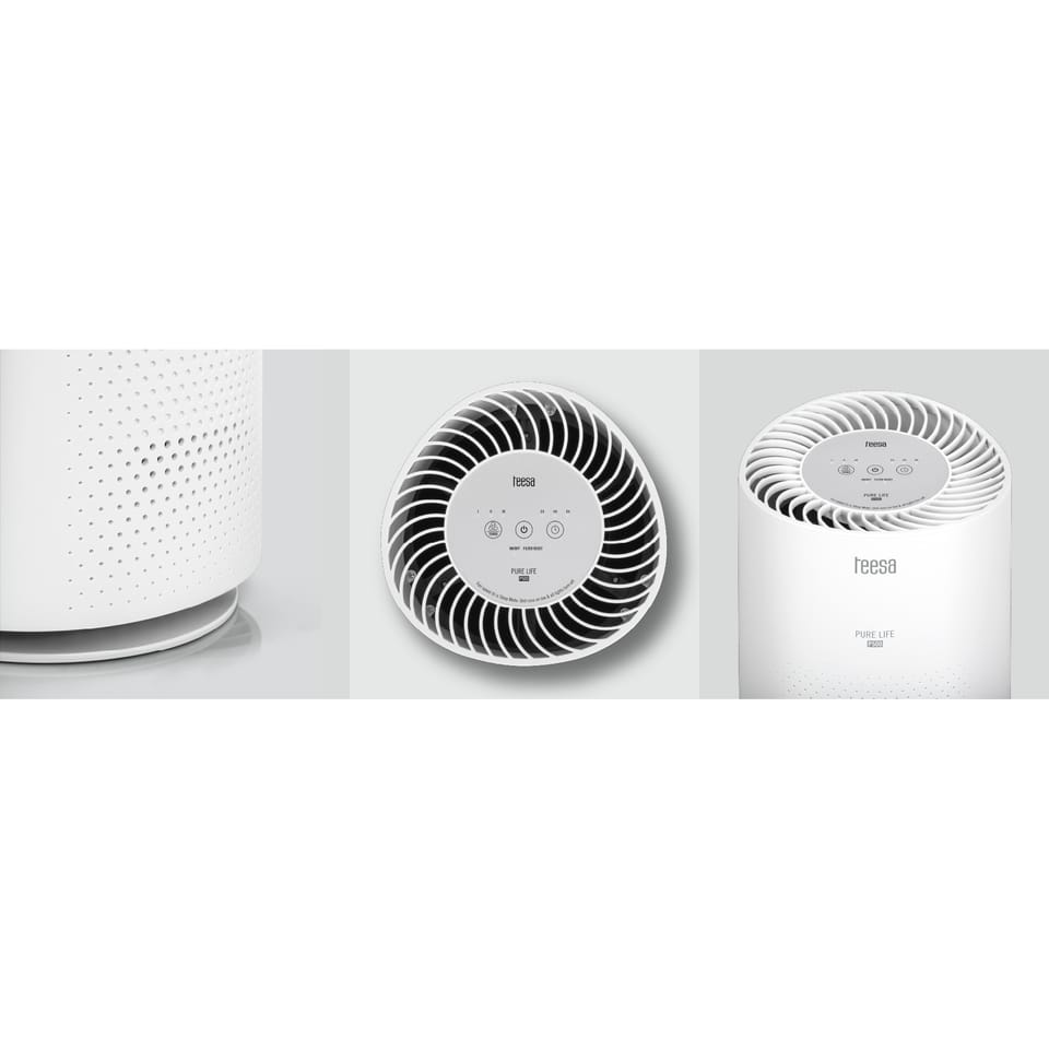 The Teesa Pure Life P500 uses a 3-stage filtration system. The pre-filter removes larger contaminants such as dust or hair, the HEPA 11 filter removes up to 99.5% of particles such as pollen and other allergens, while the carbon filter absorbs harmful gases and removes unpleasant odors.