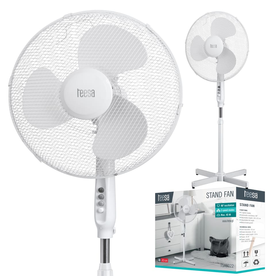 IT WAS COLD! And all this thanks to the Teesa standing fan! Choosing one of three speed modes ensures that you adjust the temperature to your needs. The large diameter of the propellers, driven by a motor with a nominal power of 45 W, combined with an automatic oscillation of 90° make the fan easily cool a larger room.