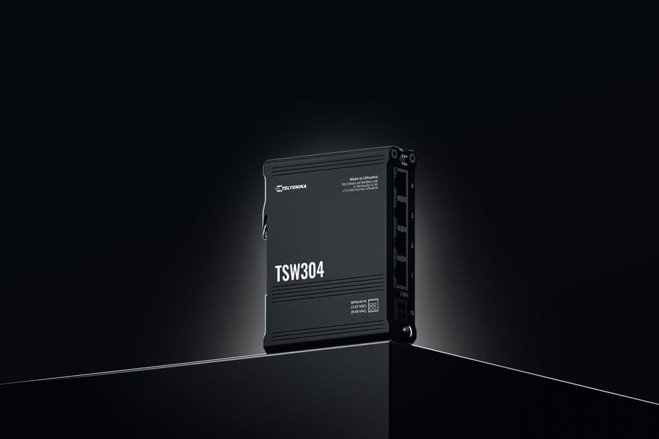 TSW304 is the smallest switch in the Teltonika Networks offer, designed for industrial applications. This very small device is equipped with an integrated DIN rail mounting option and will easily find its place in any server rack. The rugged design and shock-resistant housing make it ideal for even the most demanding industrial environments. It is equipped with 4 x Gigabit Ethernet (up to 1000 Mbps) and a wide range of supply voltages 9-57 V.