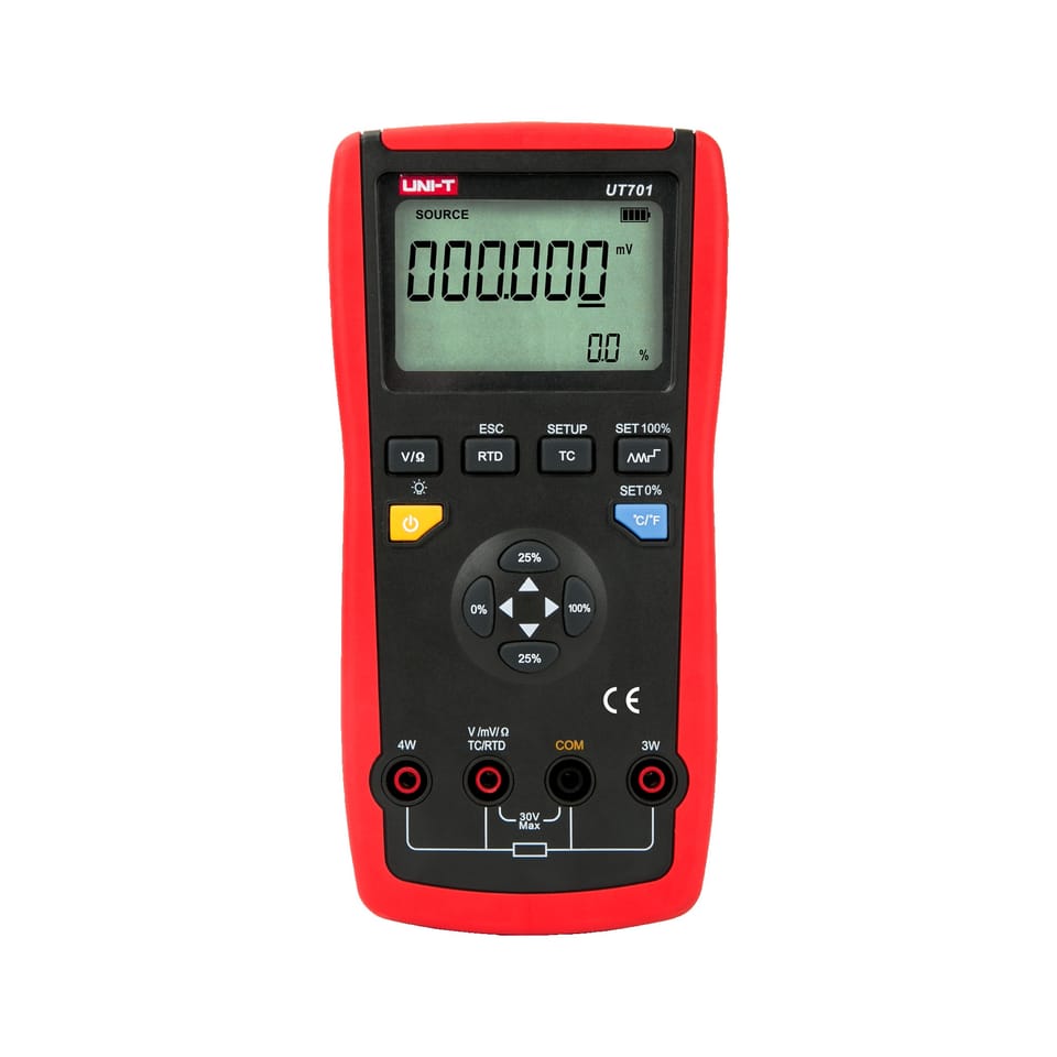 MEASURING RANGESDC voltage measurement:? 100,000 mV ? (0,05%+20)? 1000,0 mV ? (0,05%+3) Resistance:? 500.0 Ohm ? (0,05%+2)? 5000 Ohm ? (0,05%+2) Types of thermocouple: ? J: -200~1200°C (-328~2192°F) ?0,7°C? K: 200~1370°C (-328~2498°F) ?1°C? T: -200~400°C (-328~752°F) ?0,8°C? E: -200~950°C (-328~1742°F) ?0,7°C? R: -20~1750°C (-4~3182°F) ?1,4°C? S: -20~1750°C (-4~3182°F) ?1,5°C? B: 600~1800°C (1112~3272°F) ?1,4°C? N: -200~1300°C (-328~2372°F) ?0.9°C? Wre325: 0~2000°C (32~3632°F) ?1.8°C? Wre526: 0~2300°C (32~4172°F) ?1.8Resistive Temperature Sensors (RTD):? Fri10: -200~850°C (-328~1562°F) ? (0.5%+6°C)? Pt100: -200~850°C (-328~1562°F) ? (0.05%+0.6°C)? Cu50: -50~150°C (-58~302°F) ? (0.05%+0.6°C)? Cu100: -50~150°C (-58~302°F) ? (0.05%+0.6°C) ADDITIONAL FUNCTIONSAutomatic function of linear rise/fall of the generated output signal Manual step-in-rise/fall function of the generated output signal Two measurement scales: °C, °FCECHY GENERALPower: 9 V battery (6F22)Display: 63 x 40 mmDimensions: 96 x 193 x 47 mmWeight: 410 gAccessories: Battery, test leads, crocodile clips