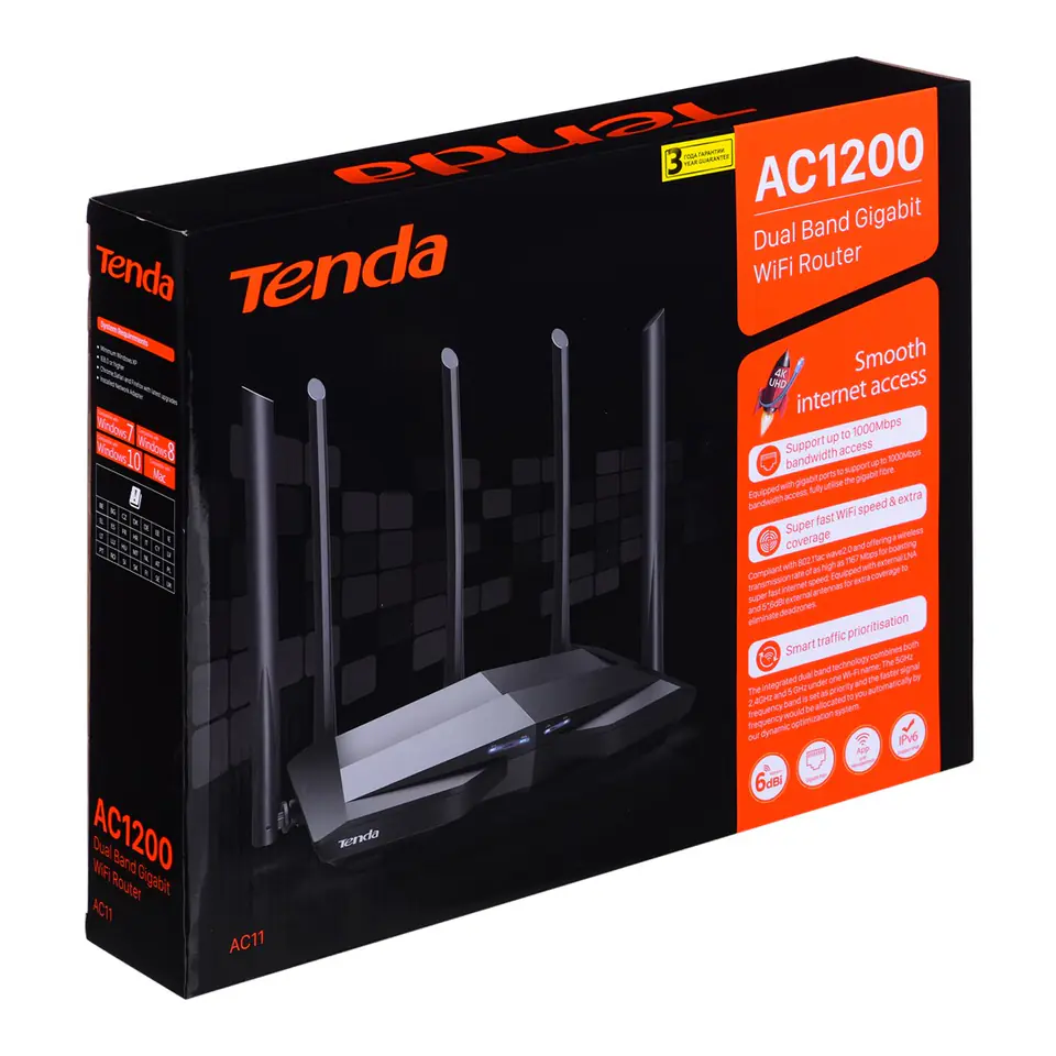 Tenda AC11 wireless router Gigabit Ethernet Dual-band (2.4 GHz / 5 GHz) Black