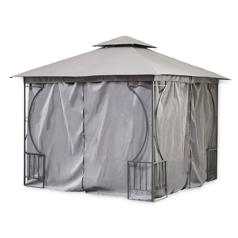 The roof and walls are made of durable and weather-resistant polyester fabric (180 g/m²) in an elegant grey colour