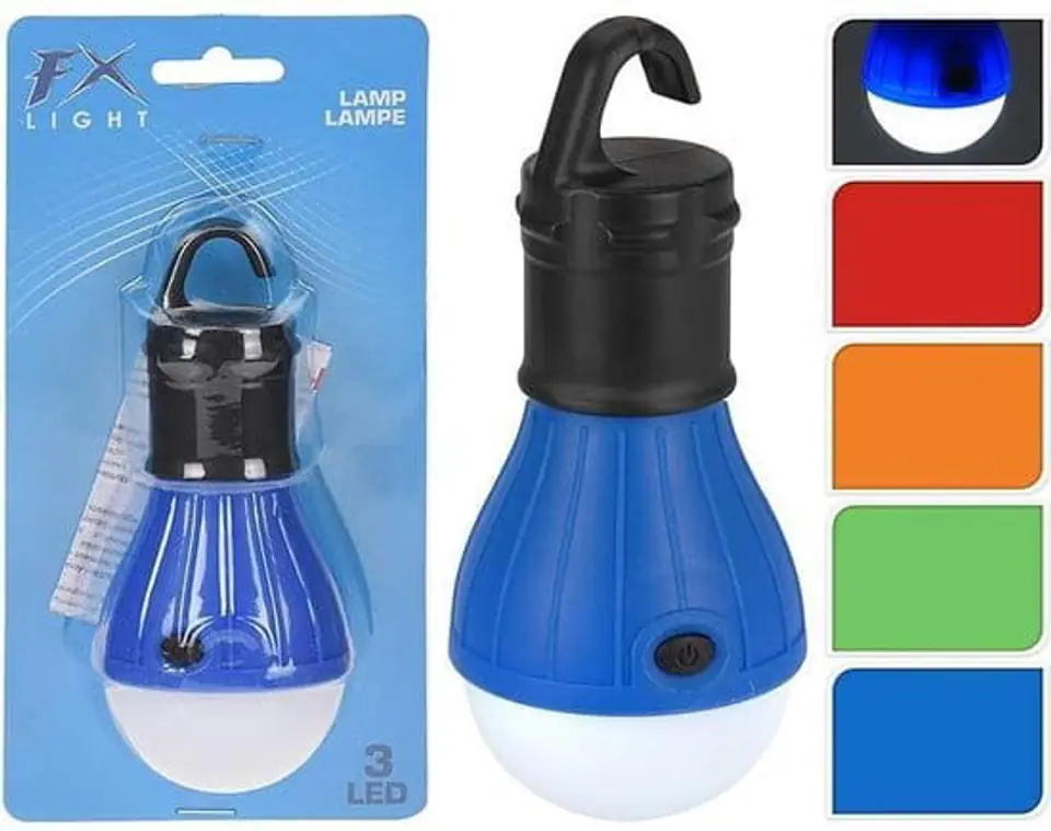 Tent pendant lamp 3 led on batteries 6x6x12cm color mix Turn on the light in the tent with this handy pendant lamp. At the top there is a hook with which you can hang the lamp. The lamp has 3 LEDs and is easy to turn on and off with a button. The pendant lamp is supplied in different colors: red, orange, green or blue. Technical specifications: Dimensions (L x W x H): 6 x 6 x 12 cm Number of LEDs: 3 Material: Polypropylene Battery type: 3 x AAA (not included) Color:color mix. Bak color selection options. Goods shipped randomly
