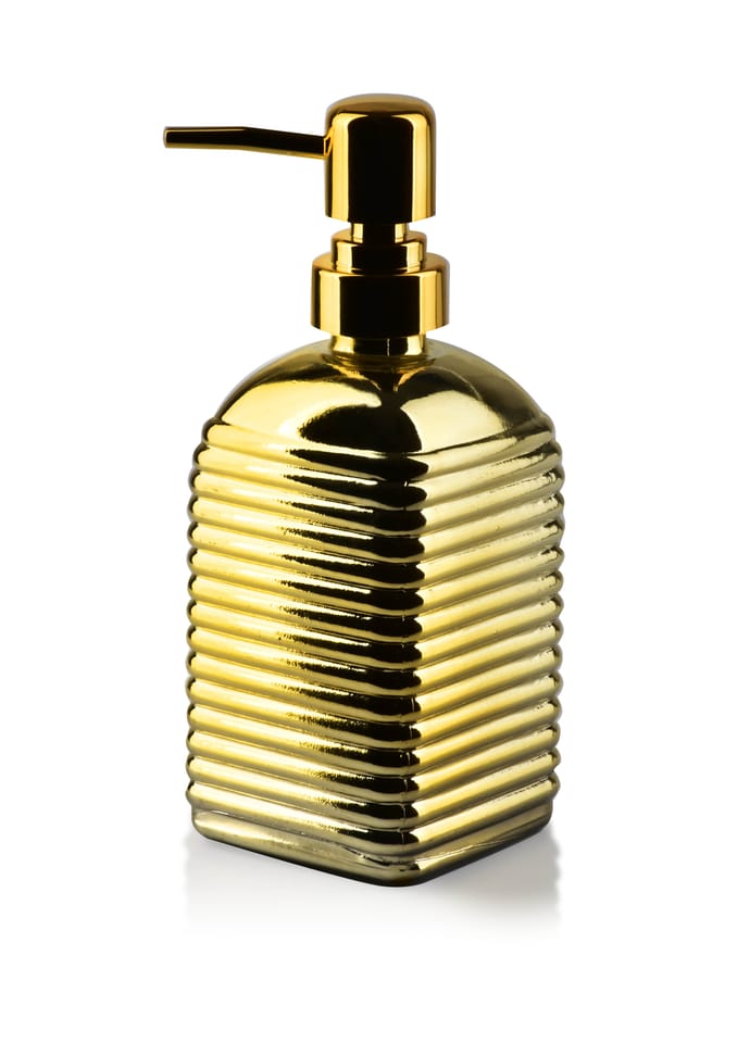 Glass dispenser from the TESSA series by BATHLAB by MONDEX in gold. It has a gold pump that makes it easier for soap to get out. The TESSA Gold liquid soap dispenser is characterized by accurate workmanship. An ideal choice for people looking for useful products that characterize the decorative elements of bathrooms. The silver color of the dispenser will make any interior look chic and elegant.