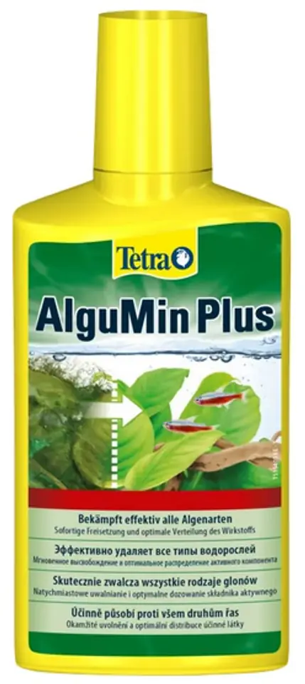 Tetra AlguMin Plus quickly fights all types of algae and effectively prevents the development of new ones.