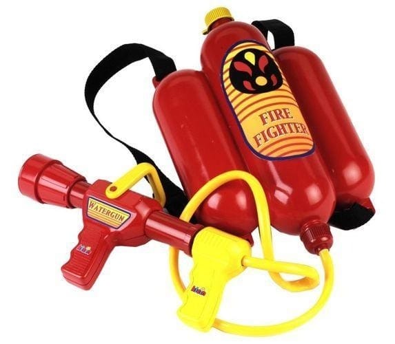 The backpack fire extinguisher is one of the hits of this series. Made very solidly from thick plastic. The whole set, of course, comes in red (the colour most associated with firefighters) with yellow accessories. Water can be poured into the tank, which the child puts on the back, and the gun connected to the tank by a hose can be used to extinguish a fire with water! What could be more fun?