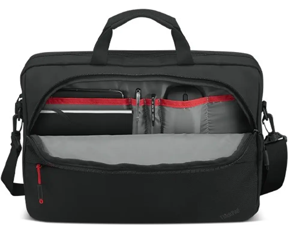 The ThinkPad Essential 16-inch topload (Eco) has all the advantages you'd expect from a well-designed toploader chassis. Pack and unpack on the fly. And move seamlessly from office to café and back with padded, organized indoor storage, comfortable zippers, adjustable shoulder strap, and 16-inch notebook compartment. Get it all for a great price and without feeling guilty.