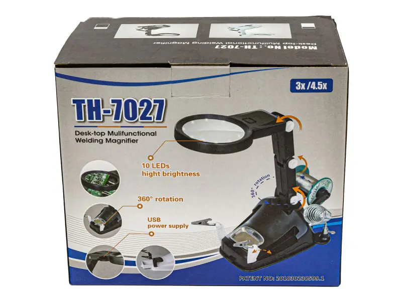 The handle has adjustable pliers, the magnifier can be moved up / down, front / back to get the perfect position. In addition, the product has a spiral holder for a soldering iron and a spool for tin.