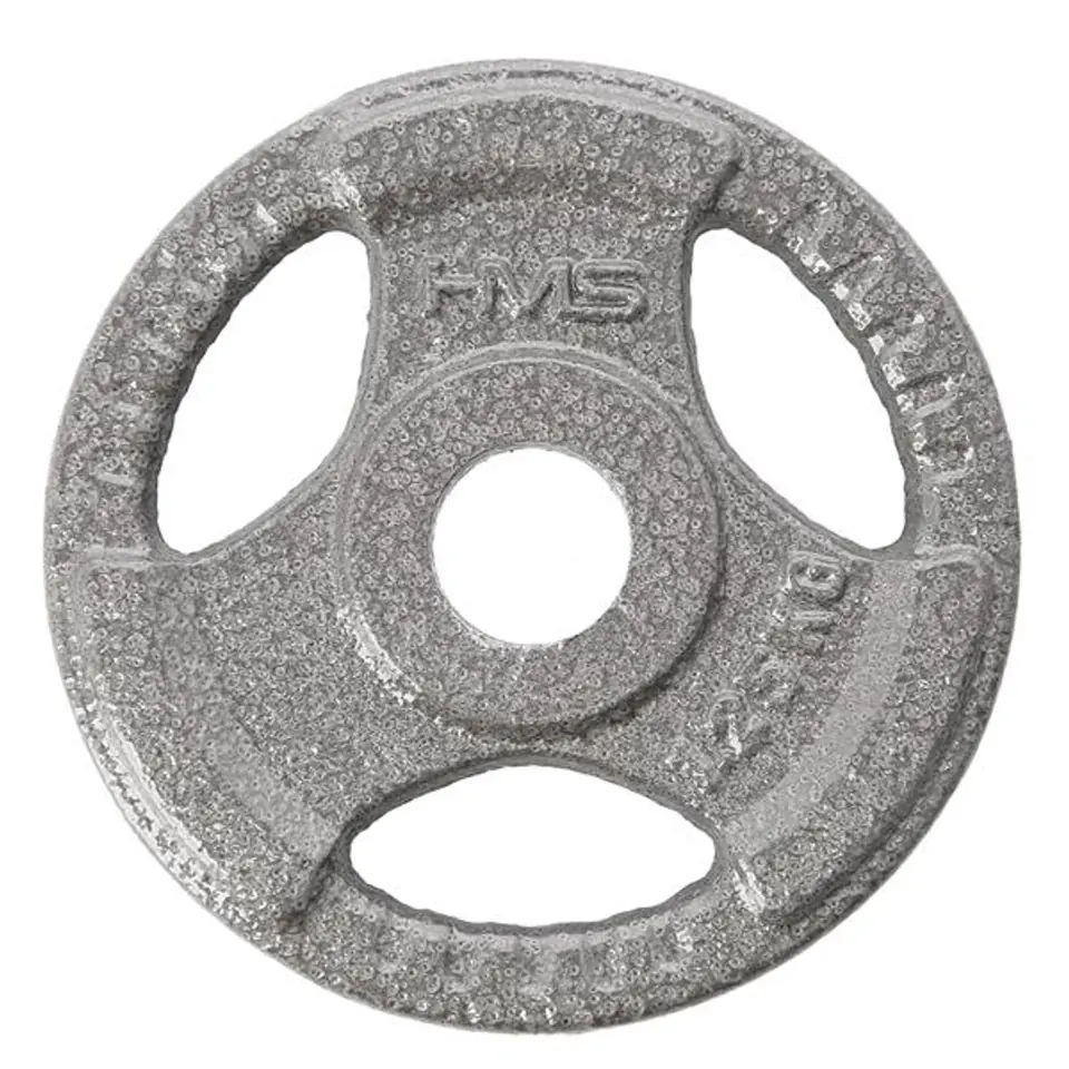 Hammertone 1.25 kg HMS is a classic of home and professional gym. The product is made of the best quality materials, which ensures its long-term use. The main advantages of the plate are the perfect casting and aesthetic finish. The plate has three comfortable and large handles that make it much easier to carry or put on the neck. The product is coated with hammertone coating that guarantees resistance to corrosion and mechanical damage. The plate has a hole diameter of 31 mm, making it suitable for any standard neck. The Hammertone HMS plate is available in the following versions: 1.25 kg, 2.5 kg, 5 kg, 10 kg, 20 kg. Specification: Material: cast iron Carrying handles hole diameter: 31 mm Outer diameter: 1.25kg: 165 mm 2.5kg: 190 mm 5kg: 240 mm 10kg: 335 mm 20kg: 410 mm Thickness: 1.25kg: 14 mm 2.5kg: 21 mm 5kg: 26 mm 10kg: 30 mm 20kg: 35 mm Notes: Warranty 24 months