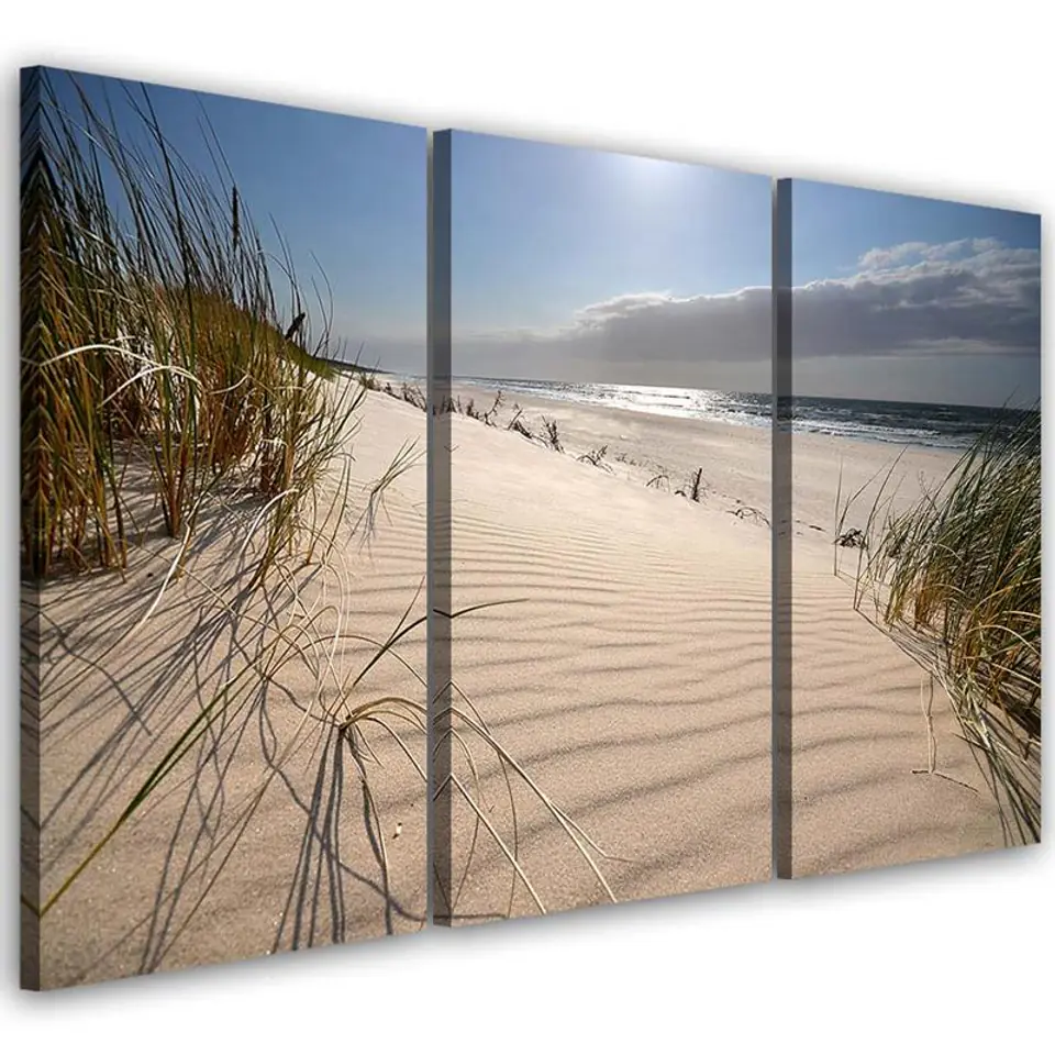 Three-part painting on canvas, Dunes on the beach Size 150x100