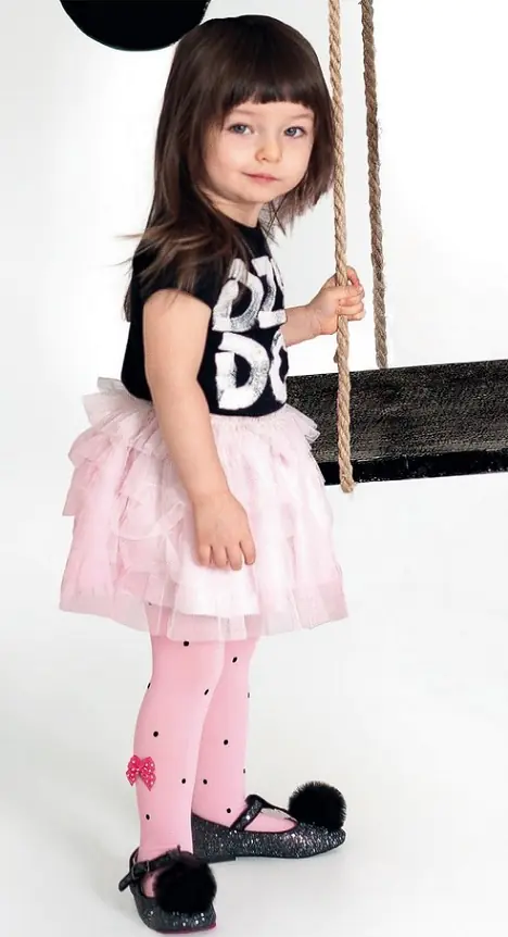 Rajstopy dziewczęce w kropeczki z doszytą kokardką wykonane z mikrofibry. Miękkie i kryjące. Idealnie dopasowane do szczupłych nóżek. Wszyty klin. Grubość 40 den. Skład: 94% poliamid, 6% elastan.