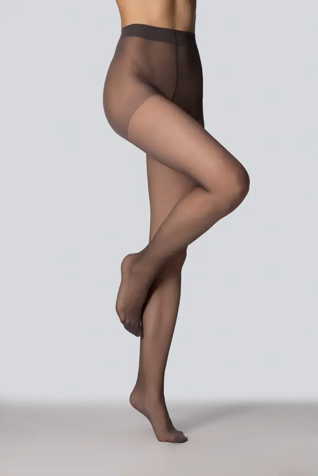 Klasyczne rajstopy damskie 15 den, wzmocnione w części majtkowej, z klinem. Skład: 89% polyamid, 11% elastan.