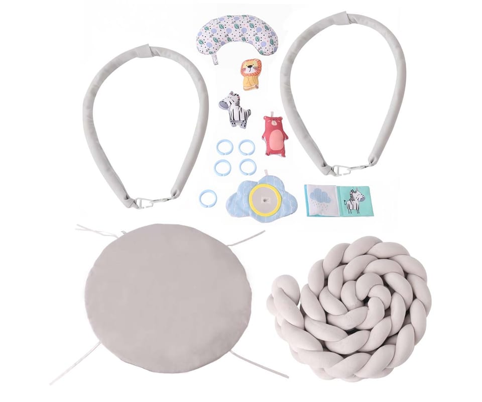 Wyposażenie i elementy interaktywneW zestawie znajdują się elementy dopasowane do potrzeb niemowląt: