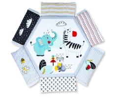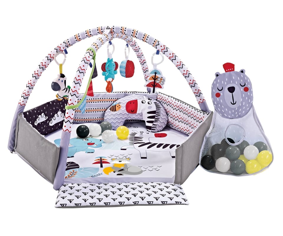 Mata edukacyjna TinyMini Śpiący Miś to przytulna i funkcjonalna mata edukacyjna dla niemowląt, stworzona z myślą o bezpiecznej zabawie oraz wsparciu rozwoju dziecka już od pierwszych tygodni życia. Delikatna kolorystyka i motyw zwierzątek sprzyjają wyciszeniu, koncentracji i poczuciu bezpieczeństwa.To idealne połączenie zabawy, komfortu i rozwoju sensorycznego.Jak dziecko może korzystać z maty Śpiący Miś?Ta mata edukacyjna interaktywna dla niemowląt daje wiele możliwości dopasowanych do wieku dziecka: