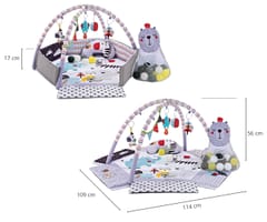 Mata edukacyjna dla niemowląt TinyMini Śpiący Miś interaktywna, sensoryczna, z piłeczkami
