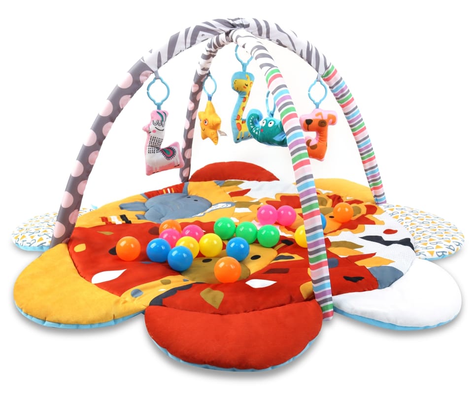Stworzona z myślą o najmłodszych, mata edukacyjna TinyMini Kwiat Safari to idealne połączenie radości, nauki i bezpieczeństwa. Jej kolorowy, kwiatowy kształt zachęca malucha do odkrywania świata w bezpieczny i przyjazny sposób. Posiada 2 kolorowe pałąki z zawieszkami – 4 zwierzątka i gwiazdkę. Do zestawu dołączone jest 20 plastikowych piłeczek. Dzięki funkcji 2w1 sprawdzi się zarówno jako centrum aktywności dla niemowląt, jak i wygodna mata do zabawy dla starszych dzieci.Mata edukacyjna pomaga w nauce chwytania i rozpoznawania kształtów. Zachęca do aktywności i kreatywnej zabawy. Zawieszki rozwijają zmysły wzroku i dotyku, a także koordynację ruchową.Idealna na prezent dla noworodka lub jako towarzysz codziennych zabaw w pierwszych miesiącach życia.Jest rekomendowana dla dzieci od dnia narodzin.CHARAKTERYSTYKA: