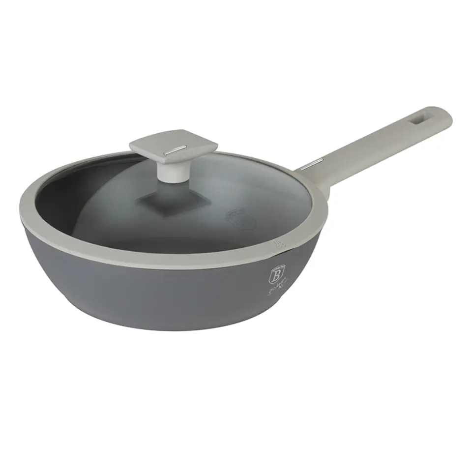 ASPEN cookware from BERLINGER HAUS is made of high-quality cast aluminum coated inside with a titanium coating with a very high hardness factor. Outer shell in gray. These attractive and fashionable dishes are equipped with SOFT TOUCH handles (silicone handle) as standard. Suitable for all types of cookers: gas, electric, ceramic, halogen, induction. The TURBO INDUCTION system (they heat up very quickly) saves up to 35% energy.