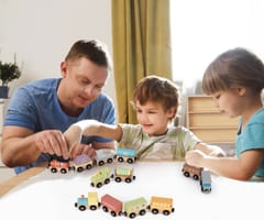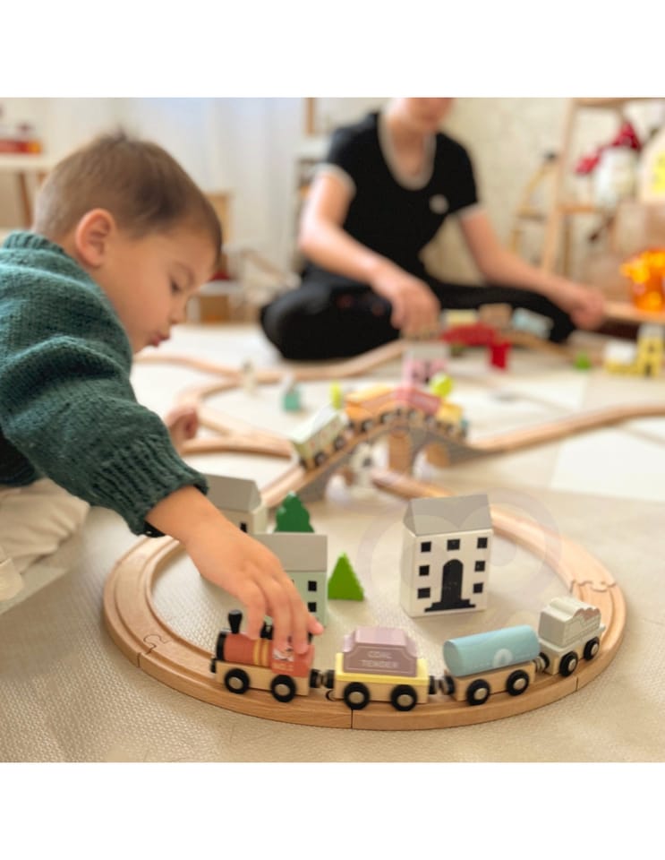 - Rozwój motoryki małej – łączenie wagoników i manipulowanie nimi wzmacnia sprawność dłoni