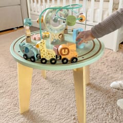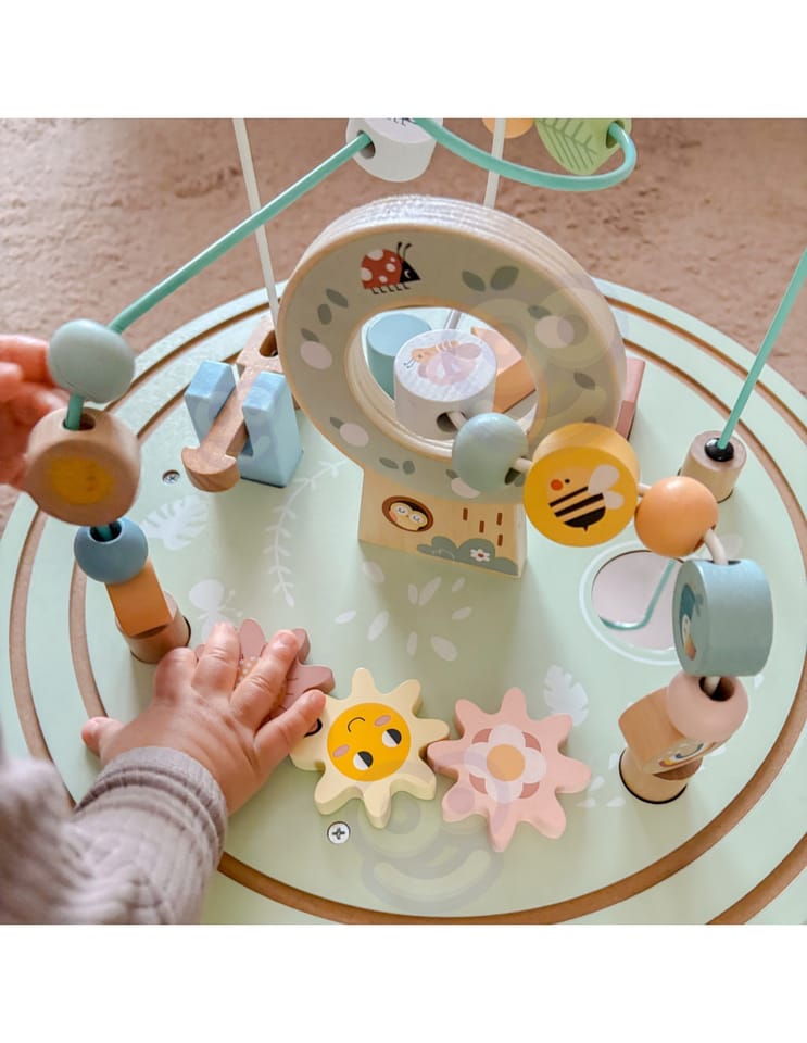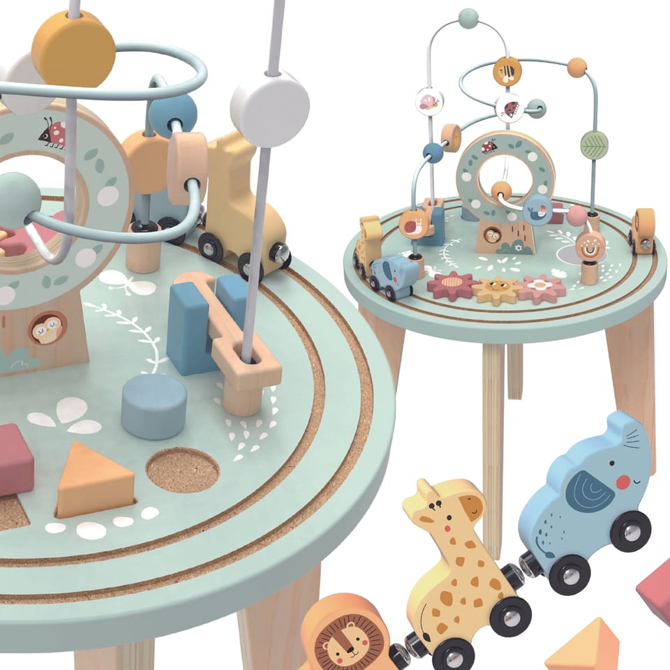 Drewniany stolik edukacyjny Tooky Toy to wielofunkcyjna zabawka stworzona z myślą o dzieciach już od 24. miesiąca życia. Dzięki pięknej, pastelowej kolorystyce i atrakcyjnym elementom w kształcie zwierząt i roślin, stolik idealnie wpisuje się w nowoczesne wnętrza dziecięcych pokojów. Zabawka zapewnia bogatą stymulację sensoryczną, manualną oraz kreatywną.Co można robić przy tym stoliku?
