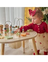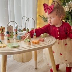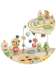 Dziecko może przesuwać koraliki po zakrzywionych torach, co rozwija precyzję ruchów i koordynację ręka–oko.