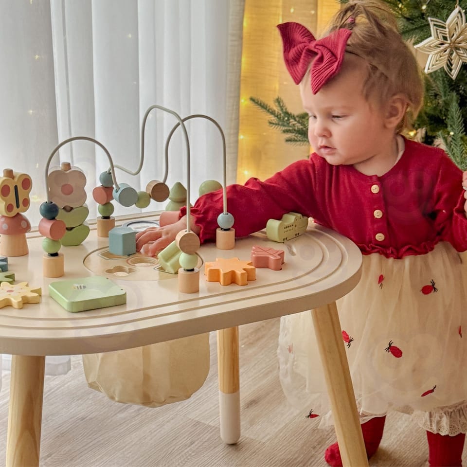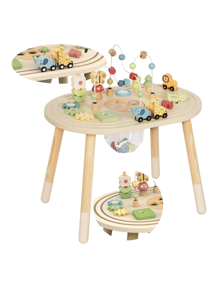 Stolik edukacyjny Tooky Toy TJ789 to wyjątkowa, drewniana zabawka edukacyjna zaprojektowana z myślą o małych odkrywcach. Wykonany z naturalnych materiałów, łączy w sobie wiele różnych aktywności, które wspierają rozwój dziecka już od najmłodszych lat.Stolik oferuje wiele różnorodnych zabaw rozwijających: