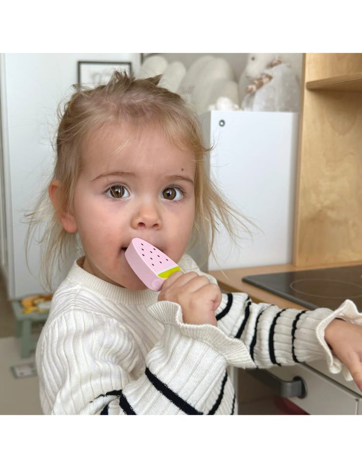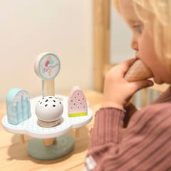 - Kreatywna ekspozycja: Zestaw pozwala dowolnie ustawiać lody na stojaku, co stymuluje wyobraźnię i zdolności manualne.